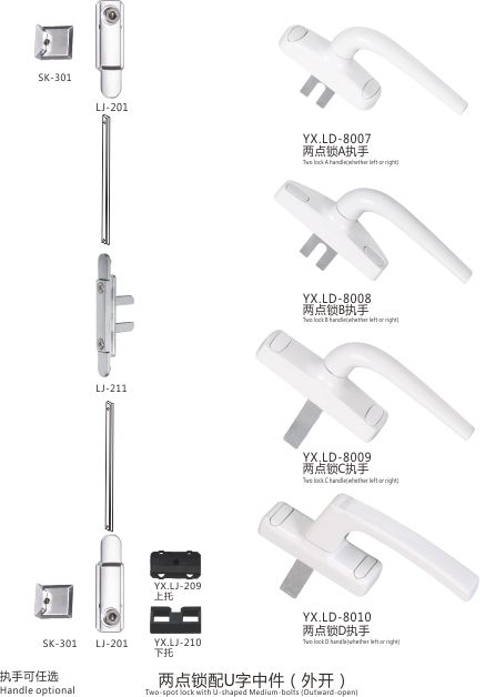 两点锁配U字中件(外开)